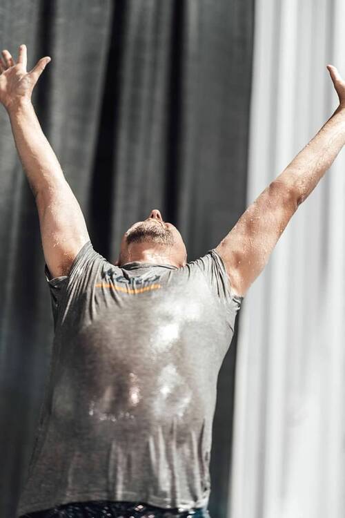 We reach up to God, giving Him our all and worshiping Him. Matt. 22:37